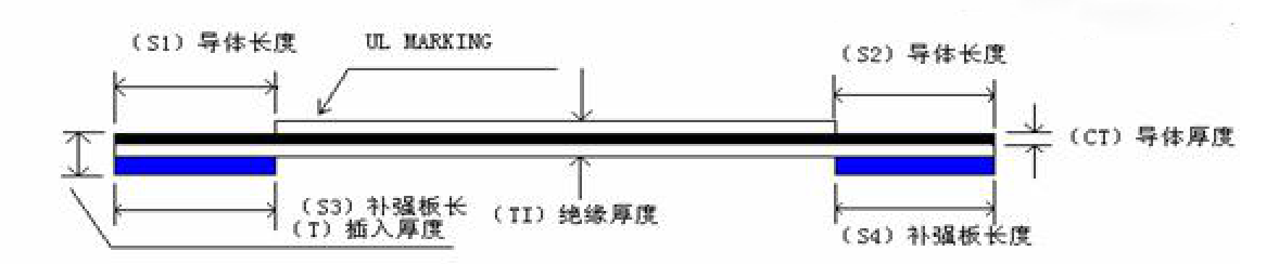 那么插接端CT的厚度呢,插接端厚度也是由三部分組成,銅線厚度,下層膠膜厚度,補強板厚度(如上面第一圖藍色部分)這個插接端常規厚度是0.3mm,如常規銅線厚度0.035mm,常規膠膜厚度0.043mm,常規補強板厚度0.225mm,加起來就是0.3mm厚度。這個也是FFC軟排線的標準插接端厚度,因為FPC連接器的插槽的縫隙也是0.3mm,所以這樣,排線端部插入連接器就是一個標準的配合,不松不緊。