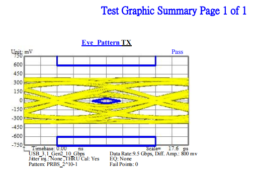 下面圖九是不貼復合鋁箔傳輸數率圖,為7.0Gbps;圖十是貼上復合鋁箔線纜的傳輸數率圖,為9.5Gbps,顯然貼上復合鋁箔后,線纜可以傳輸更高頻率信號。